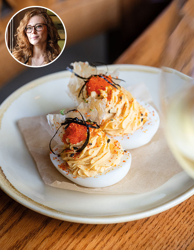 Recipe: Devilled Eggs with Crispy Chicken Skin, Togarashi and Tobiko