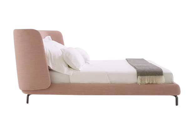 Desdemone Upholstered Bed by Ligne Roset in pink, Price Upon Request. Must Société