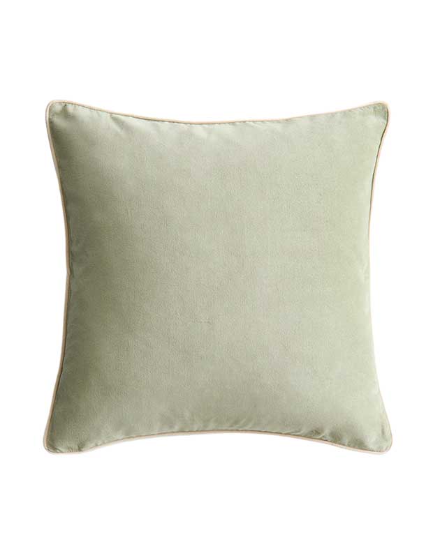 Velvet cushion with piping detail in light green, $20. H&M Home