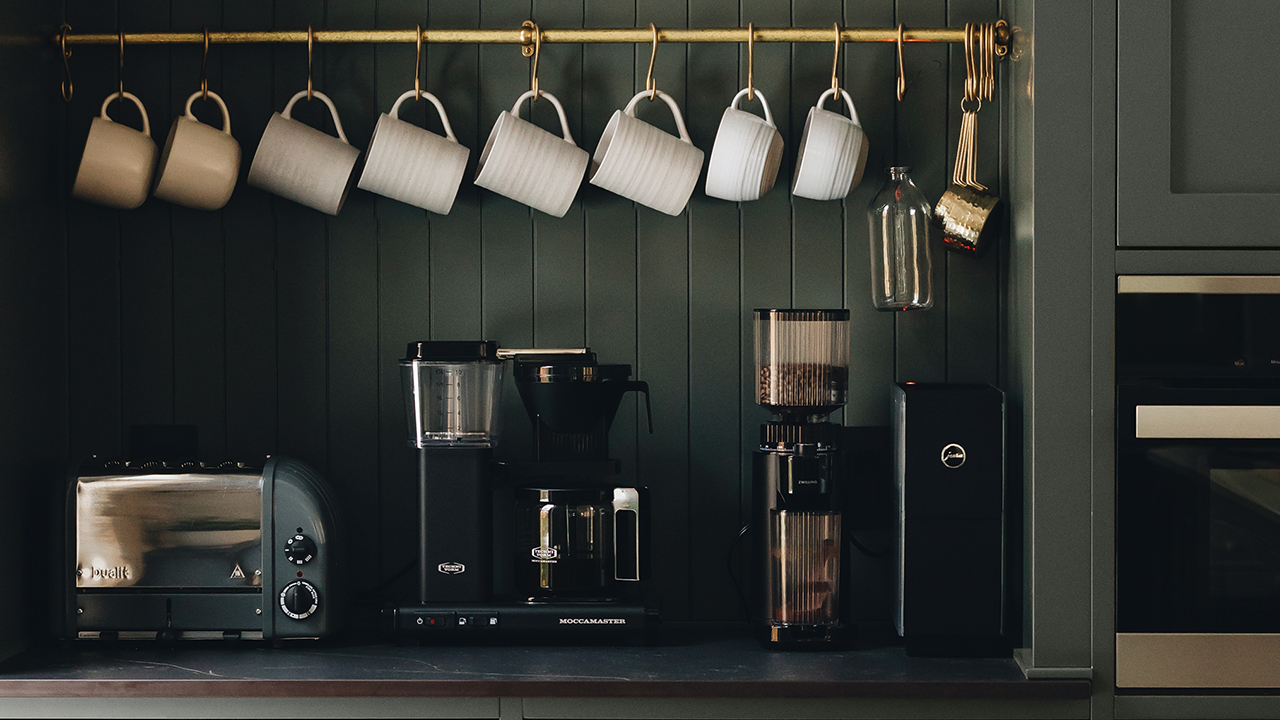 Stunning enamel stoves and range hoods traditionally get the starring role in kitchens, but there’s been a shift towards creating a design moment with a striking coffee bar. A designated spot to make your fresh brew sparks joy and invites you to show off a well-loved coffee maker — and its barista-worthy accessories. Plus, it doubles as a self-serve drinks station when hosting friends and family. Below, see how designers seamlessly integrate coffee stations into their clients’ hardworking hubs. In some cases, they’re tucked behind pocket doors, but other options elevate them into focal points. These coffee bar stations are ones you’ll want to wake up to!
