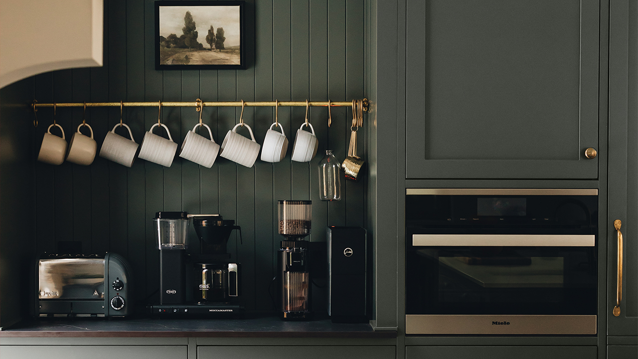 Stunning enamel stoves and range hoods traditionally get the starring role in kitchens, but there’s been a shift towards creating a design moment with a striking coffee bar. A designated spot to make your fresh brew sparks joy and invites you to show off a well-loved coffee maker — and its barista-worthy accessories. Plus, it doubles as a self-serve drinks station when hosting friends and family. Below, see how designers seamlessly integrate coffee stations into their clients’ hardworking hubs. In some cases, they’re tucked behind pocket doors, but other options elevate them into focal points. These coffee bar stations are ones you’ll want to wake up to!