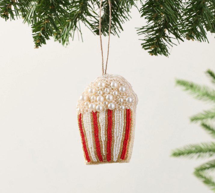 Calling all film fanatics! Made with pretty coloured beads and evoking an old-school popcorn carton, this trendy ornament is ideal for any movie buff.
