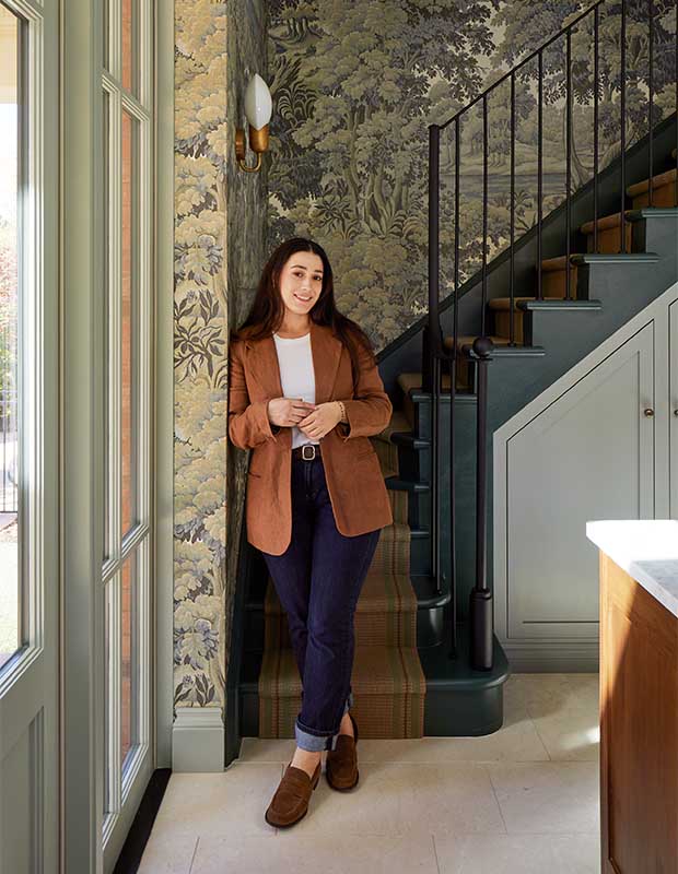 “I love the English aesthetic because it feels so lived in, warm and homey, but it’s also so interesting at the same time,” says designer Emily Wunder. When clients Erin Westhoff and Jared Vandeweghe approached her about renovating their 1890s Queen Anne home in Stratford, Ont., English style was a natural fit. “The aesthetic feels timeless,” she says. To increase the kitchen’s natural light, Emily removed the uppers over the sink and installed a new large window. A glass-paned door framed by sidelights replaced a window and small door to the backyard, and the formerly walled-up staircase (likely built for household staff) was exposed. The staircase to the basement moved to another part of the home to make space for pantry cabinets under the stairs.