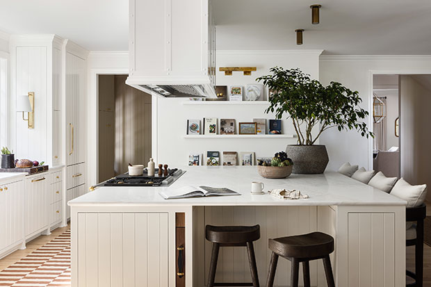 If you have a cookbook collection, don’t hide it away in the pantry. Put it on display and let it double as a design feature. “The cookbook wall is almost like art,” says designer Elizabeth Bennett. “The books are beautiful and fit with the breezy style of the house.”