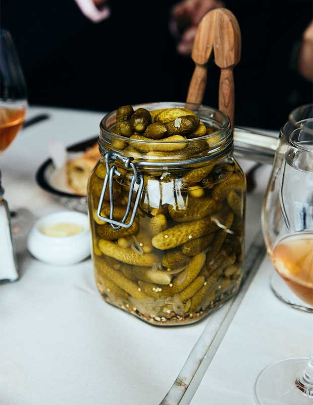 At L’Express, jars of cornichons are always at the table.