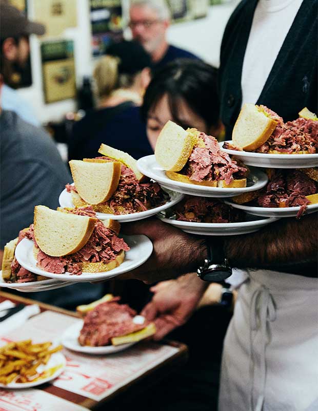 Smoked meat sandwiches from the oldest deli in Canada, Schwartz’s Deli.