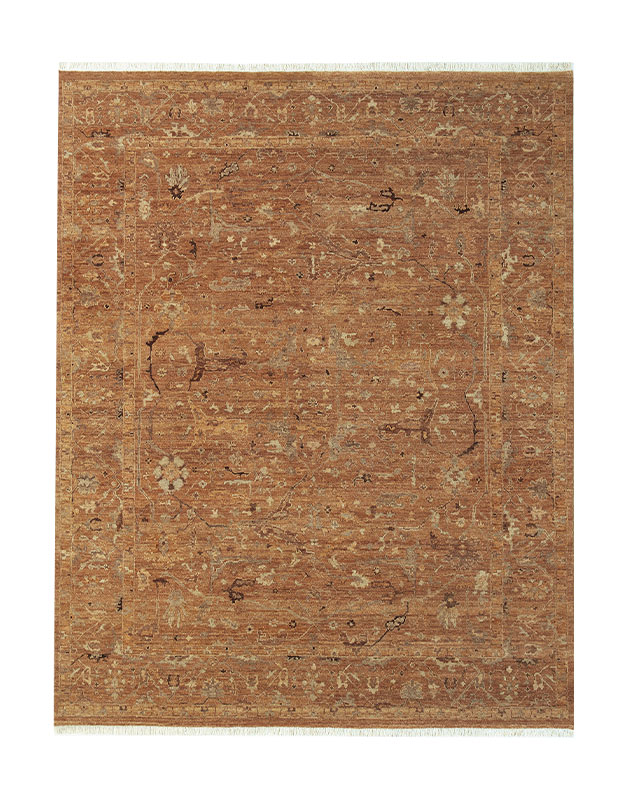The hand-knotted Jewel Bidjar Ghazni wool rug is a fresh take on a historical style in warm, golden tones.