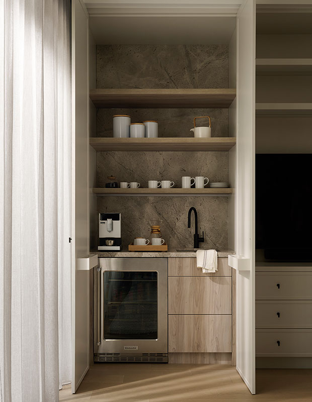 Homeowners are shaping their homes into places of relaxation and refuge. Budgets are flowing to principal suites designed as true sanctuaries, complete with dedicated seating areas, hotel-style amenities including beverage stations and generous walk-in closets and, of course, spa-inspired bathrooms.
