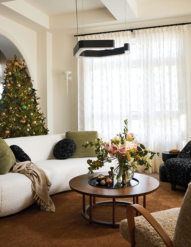 “I wanted this house to feel luxe, modern and attainable,” says Sabrina. “It has all these beautiful finishes, but it feels effortless, airy and down to earth — perfect for the holidays.”