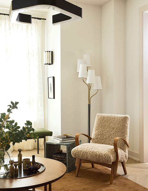 “I prioritized a light palette, refined finishes and curvy pieces to create a warm, welcoming vibe,” says Sabrina. “The neutral and olive palette ties everything together.”