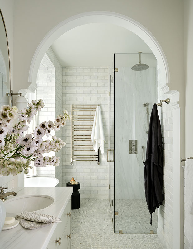 A shapely arch adds an era-appropriate touch in the principal ensuite.