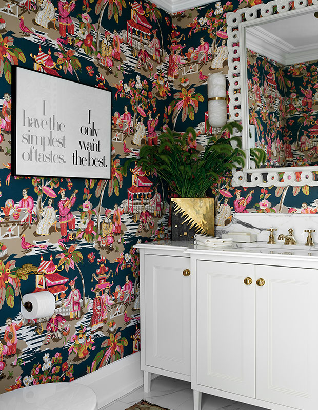Being in Erica’s orbit has clearly had an effect on Corey: he chose the wild wallpaper in the powder room.