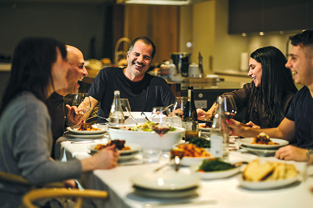 A shared meal with colleagues and family. From left: Terroni executive chef Giovanna Alonzi, actor Carlo Rota, Cosimo, his daughter Simona Mammoliti and nephew Costa Siclari.