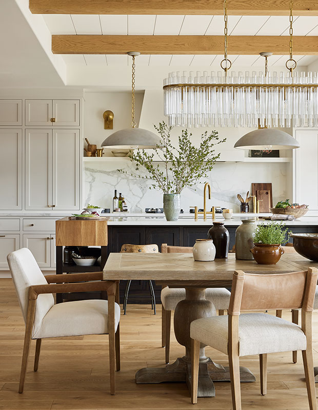 “They wanted an eclectic, vintage-inspired home with modern and English-style elements,” says Oshawa, Ont., designer Nicole Thomas of Thomas Interiors + Design of the design brief. Creamy whites and woods are classic, while brass and black accents provide contrast and feel very today.
