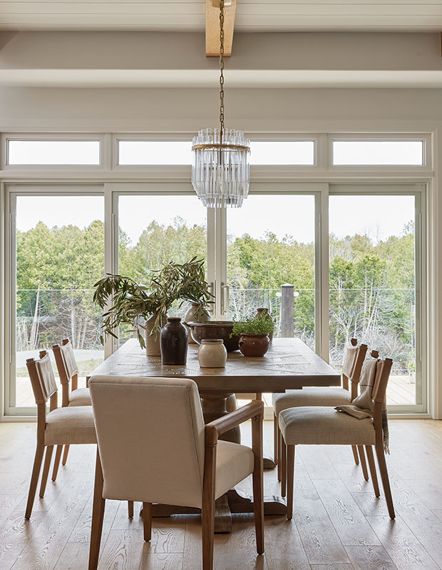 While work life is busy, the couple still finds time to relax in the bungalow — indoors or out. “The double patio doors off the dining area create an indoor-outdoor effect,” says Jason. The deck is a fantastic spot for drinks.