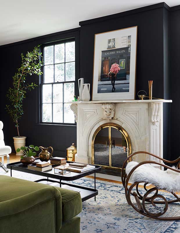 The original Victorian stone fireplace surround is a standout feature. “It was in rough shape, but it was one of the most beautiful things about the house,” says Orsi. The living room’s original Victorian stone fireplace surround was cleaned up and now takes centre stage, blemishes included. “One of the things I learned in London is that old homes teach us to embrace imperfections. Even with small cracks or discolouration, a piece can still be beautiful,” says Orsi.