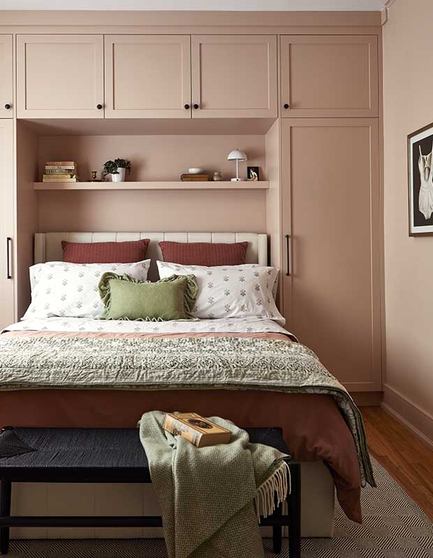 In the second bedroom, Orsi drenched the walls and built-in around the bed in the same pale pink hue to keep the look light. Orsi’s adult children stay at the house when they’re in town, and Orsi often works here. Someday in the not-too-distant future, she envisions downsizing and moving in full time. “I feel like I’m walking into a dream every time I’m here.”