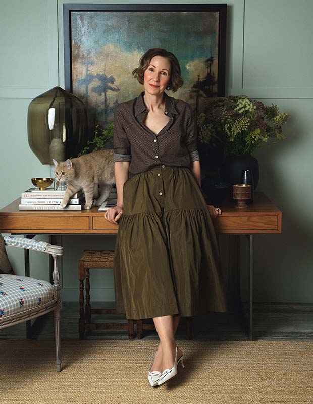 The gallery wall features pieces Orsi has been saving for years. “Some are paintings given to me by painters I’ve worked with and, some are by family,” she says. Determined to bring English style back to the house, she travelled to London to immerse herself in the look, visiting the deVOL Kitchens showroom and design shops in the Belgravia district before embarking on the six-month-long renovation. “My style is more contemporary, but I knew it would be a missed opportunity if I did something modern,” she says.