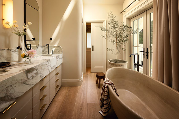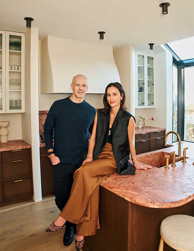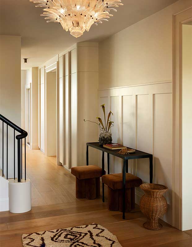 “Melanie and Alex wanted the home to be organic, comfortable and interesting — something warm with a neutral palette and beautiful natural stone,” she says. “I brought in materiality and detailing to capture that.”
