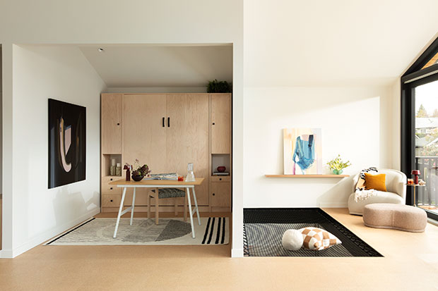 Underneath the netting on the ground level, cork flooring adds warmth and softness. “When you drop something, there’s a gentle thud — we haven’t broken a single glass,” says Jonathan with a laugh.