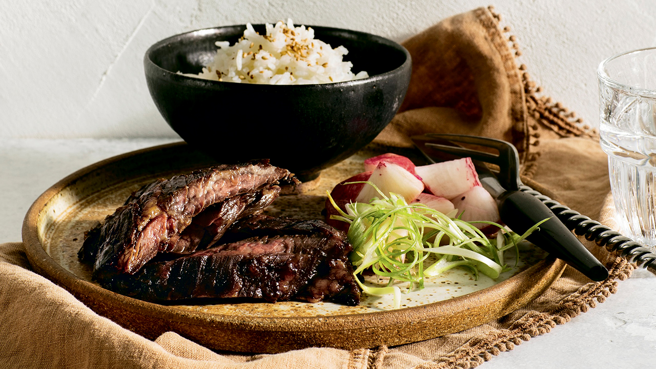 - To serve, slice steak against grain and transfer to serving plate. Drizzle any accumulated juices over steak and garnish with scallion and sesame seeds, if desired. Enjoy!