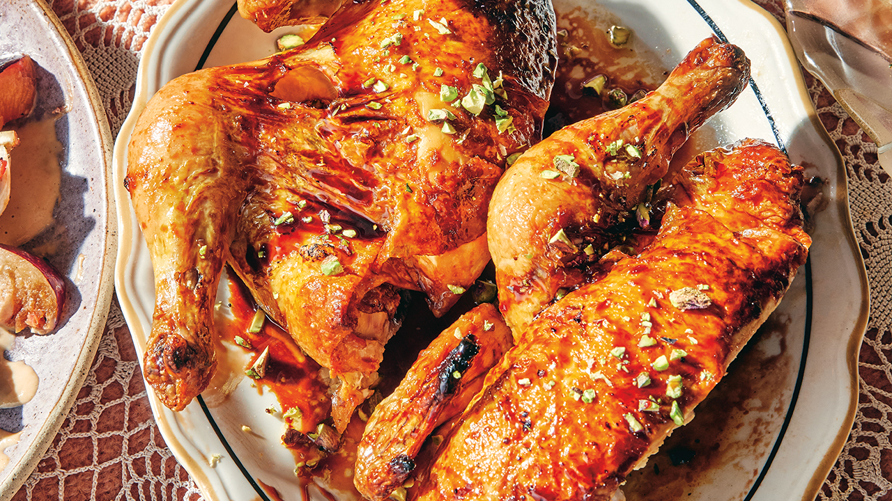 Roast Chicken with Pomegranate Molasses and Pistachios