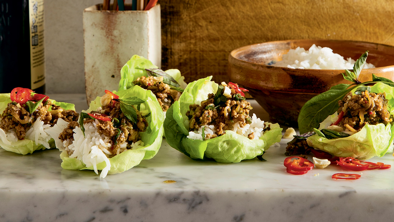 “I’ve kept all the bold flavours intact, with plenty of aromatics like shallots, garlic, ginger and scallions, along with a sweet and savoury sauce that soaks into the ground chicken.” — Maxine Sharf